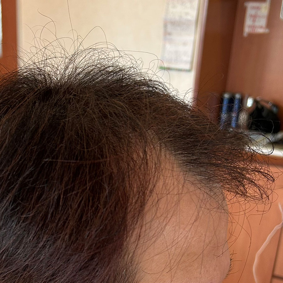 再生医療発毛ケアコースを始めてからは抜け毛も減って、髪の毛が太くなり、密度が濃く、頭皮の透けが無くなっててきました!